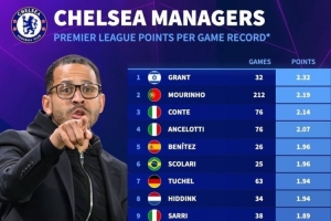 24直播网4月22日讯 《转会市场》统计了切尔西新世纪17任主帅的英超场均拿分,罗塞尼尔仅位列倒数第二。
