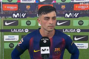 24直播网04月23日讯 西甲第33轮,巴萨1-0战胜塞尔塔。赛后,佩德里接受了转播方Movistar的采访。过程中出现一个小插曲,佩德里一度跑走以参加球队为德容举行的纪念仪式。
