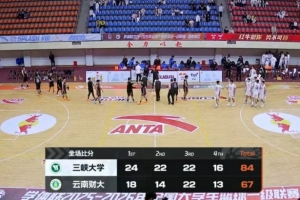 末节决战,鲍鑫洋和胡明宇接连三分帮助云南财大追分,但三峡大学连续抢断反击强势回应,三峡大学一度拉开近20分领先。陈吉鹏连续取分再追分,但王勇健内线补篮还能回应,比赛已逐渐失去悬念,最终三峡大学84-67力克云南财大。