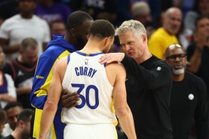 NBA直播网4月25日讯 近日,加内特在个人的节目中表示,随着在附加赛中库里、科尔和追梦三人在场边拥抱,勇士王朝即将结束。