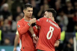 B费把话题转到今年夏天的世界杯,这不可避免地让人提到一位两人都熟悉的著名前队友。B费表示:“让这一切以C罗在最后一届世界杯夺冠而告终,那将是一件不可思议的事情。我真心希望我们能做到,不仅是为了葡萄牙,也是为了C罗为足球和这个世界所付出的一切。”