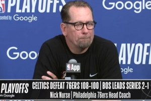 NBA直播网4月25日讯 NBA季后赛首轮G3,76人100-108不敌凯尔特人,大比分1-2落后,赛后纳斯接受了媒体采访,以下为采访全文。