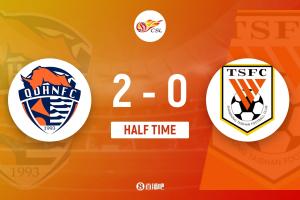 NBA直播网4月26日讯 中超第8轮,青岛海牛坐镇主场青岛青春足球场迎战山东泰山。上半场,刘骐玮判断失误送空门,林创益破门+失良机,埃朱马建功,刘洋中框,牟鹏飞门线神扑。半场战罢,青岛海牛2-0山东泰山。