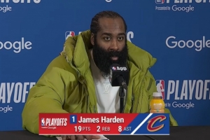 NBA直播网4月27日讯 NBA季后赛,骑士89-93再负猛龙,总比分战成2-2平,骑士球星哈登赛后接受了媒体采访,以下为完整采访内容。