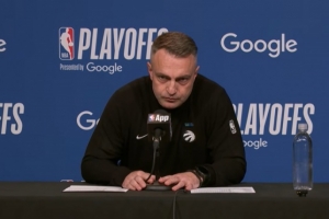 NBA直播网4月27日讯 NBA季后赛东部首轮第四战,猛龙主场93-89力克骑士,将系列赛大比分扳为2比2平,猛龙主帅主帅拉贾科维奇赛后接受了媒体采访,以下为采访完整版内容。