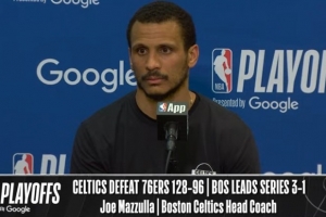 NBA直播网4月27日讯 NBA季后赛首轮G4,凯尔特人客场128-96大胜76人,总比分3-1拿到赛点。赛后乔·马祖拉接受了媒体采访,以下为采访全文。