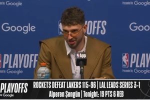 NBA直播网4月27日讯 火箭在主场以115-96击败湖人,将系列赛比分扳至1-3。赛后申京接受了媒体采访,以下为采访全文。