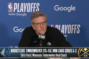 NBA直播网4月28日讯 NBA季后赛首轮,森林狼113-125不敌掘金,大比分3-2领先,森林狼主帅芬奇赛后接受了媒体采访,以下为完整版采访。