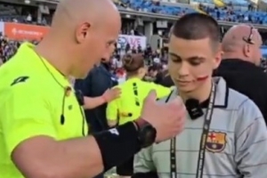 NBA直播网4月28日讯 据《阿斯报》报道,在波兰的一场活动中,一名巴萨球迷友好地走近裁判马齐尼亚克,“指责”他上赛季巴萨对阵国际米兰的欧冠半决赛次回合比赛中的执法表现。