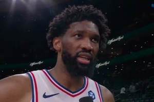 NBA直播网4月29日讯 NBA季后赛东部首轮G5,76人113-97战胜凯尔特人,大比分2-3。恩比德赛后在场边接受了媒体采访,以下为采访全文。