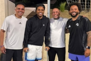 NBA直播网4月29日讯 皇马前锋罗德里戈正从右膝前十字韧带和外半月板重伤中逐步恢复。据《阿斯报》报道,罗德里戈的队友、教练组成员、俱乐部工作人员和朋友纷纷前来陪伴,最近两位登门探望的访客是巴西足坛的传奇人物罗伯特·卡洛斯和马塞洛。